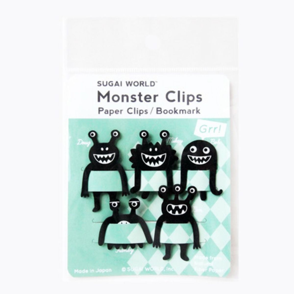 他の画像を見る ユニークなモンスターの形をした新感覚のクリップ SUGAI WORLD モンスタークリップ 5個入 ブラック 天然素材 ネコポス対象商品 再入荷 ¥ 528 税込 1袋に5種類のモンスタークリップが入っており、書類の分類分けや本のインデックスとして使用できます。5分、水に浸けると好きな形に曲げて遊ぶこともできる新感覚の紙クリップです。 詳細を見る お気に入りに登録する